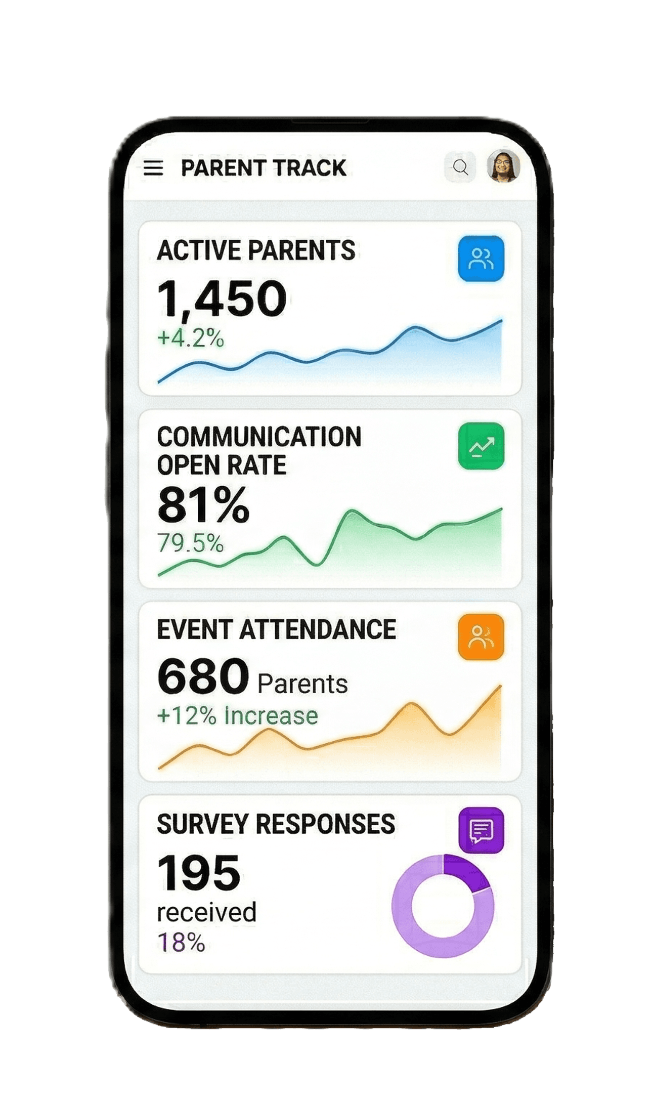 Yes, Parent Track can be used to track parent volunteer hours and other metrics for parent engagement success such as event attendance, fundraising, and more.